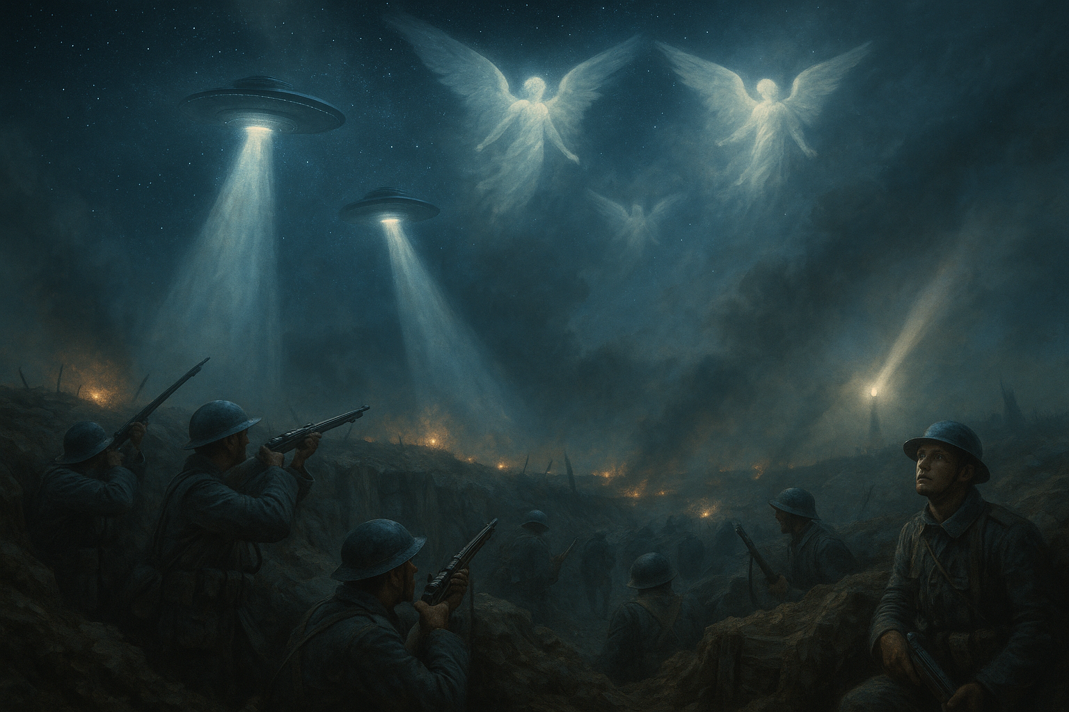 Появата на ангели, уж спасили от смърт френските и британските войници по време на битката при Монс (Белгия) в Първата световна война.